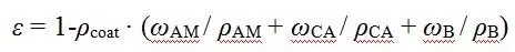 式中, φAM為活性物質相體積分數, φCA為導電劑相體積分數, φB為粘結劑相體積分數, ε為極片孔隙率,即電解液相體積分數。導電劑和粘結劑相互混合在一起,很難區分。